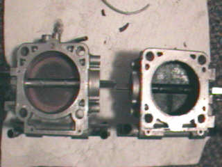 PICTURE OF COMPARISON BETWEEN DIAMETER OF TWO TBs - 240SX left - 300ZX right