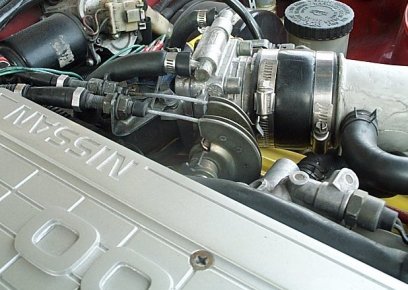 The labor for this modification is pretty straight forward, but varies depending on your approach and price came out to $60 for TB and about $20-$30 for various tools/accesories you will have to buy. I hear it's easiest if you can find a Throttle Body from a 240SX, Stanza, or Nissan Truck ('89-'91 year models w/KA24(e) DOHC 4-Cylider Engine) that has the word Nissan stamped on it (Nissan Part). Of course as luck would have it, I couldn't find an "available" Nissan one. The other type, which is also a direct Bolt on is the Hitachi type. On the 240SX's I found, I never saw anything but Hitachi. I never found a Nissan Truck, and the only Stanza I saw had the Nissan type, but it was part of a complete motor so they wouldn't let me buy it. It appeared on the Nissan type that you could just unbolt it and stick it right back on the Z with NO changes at all...the linkages (where the cables set into) looked to have the same construction and positions...while you'll see on the Hitachi model that the linkages would only allow about 30% of full throttle.