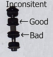 The front center bushings on the 86 did seem to take more of a beating than the rears, but you will see when installing new front bushings that the majority of the damage and compression is simply from how they are smashed down by the brackets. Other than that compression, they don't see too much wear. I'm sure a lot of this has to do with the brackets holding them in place. They are secured and the compression is confined in a space, where as the endlink bushings have only the washers to retain them.
