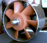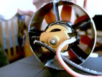 The pic on the left was the only part of the eRAM I though could use a little better construction. It is the stationary plastic blades that are supposed to create a vortex from the air coming off the eRAM. It is just glued into place. You can see the glue where the blade attaches to the wall of the piping. But that glue is pretty hard and has a tight hold. The next pic is just a side view. The motor used for the eRAM appears to be a model airplane engine, and the orange fan (as seen above) may or may not be a custom fan that the eRAM people have fabricated for this application. I'm not sure.