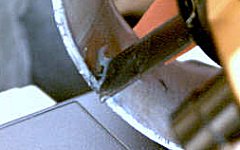The pic on the left (below) shows where I drilled a small set of holes to get the wiring for the eRAM set up. The pic of the right is the intake side of the eRAM.