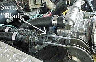 The rectangled area in this pics shows the switch and where the "blade" of the switch sticks out underneath the throttle cable.