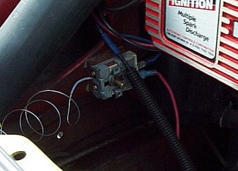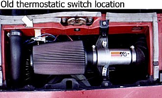 You can try setting the switch to just the perfect location, but since the temp. of the days vary, so will the length of time the fan runs after shutdown. I decided the fastest way to remedy this problem without having to continually adjust the t-stat switch was to make a power/current cut-off switch for the fan. Since I no longer use the antenae switch, but I wanted it to stay where it is, I decided to take advantage of it and use it as the cut-off switch. Simple to do, just take two wires, one that will reach about the stickshift to the t-stat switch + lead and one directly from the + battery terminal, drill a couple small holes (big enough for a wire to go through) in the firewall, lead them up to the antenae switch, cut the existing (stock) wires (mine were green) from the switch (with about 2" left on them) , and then crimp the two wires you pulled through the firewall, one onto each small section of wire coming off the antenae switch. You want to route the wires as far from the hot manifold shields as possible and also under the dash (by passenger side left foot) and up into the back of the console. Make sure you screw the antenae switch back in nice and tight (but don't bust the plastic holes) and that the ON position is how you want it....on mine the on position is when the top part of the antenae switch is depressed. Now I can leave my fan at whatever temp I want and if I feel its been on too long, I can just switch it off.