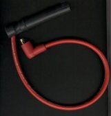 As for the visual impression I get from the cables...let me tell you I am very impressed. The cable is 8.5mm thick. The actual conducting wire is 2.5mm thick. The cables came with specific information concerning the application. Click Here for that additional information. For special Street Vehicle Owner use Click Here. The wires are soft and flexible. This facilitates easier installation for our impossibly laid out engines. I bought some additional wire clips to make the application look really nice. Another great thing about these wires is that the distributor end of the wires has connectors that can't slip out of their boots. You may have noticed with other spark plug wire sets that the wire can "somewhat" easily slide in or out of the boots at the distributor terminal ends. On the Magnecors, the metal terminals are built with solid metal at right angles and actually crimp onto the wire after making the right angle curve. So you have a solid right angle curve that can't slip out of the boots. The plug-side boots allow you to choose whether to have the wire enter the top of the boot from the side (see pic on the left) or from the top (see pic on right).