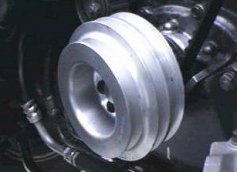 All I can say is that I didn't feel any difference and if its really underdriving my accesories, then it seem to give me more of a loss (in upper-end RPM) than a gain (in HP). However if you are going to do a turbo conversion or Maxima alternator switch you need to get a crankshaft pulley w/one serpentine pulley slot and a serpentine water pump pulley. I would definately suggest finding these parts in a junkyard...if they'll let you strip them from the engine...not too likely. Here's the pic...it looks really good, but big deal if it doesn't perform for you.